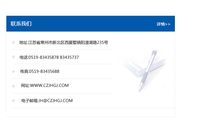 地址:常州市新北區友邦商務大廈1幢16、17層  電話:0519-85101652  傳真:0519-85112595  郵編:213022  網址:www.cz-jiayue_cn.lbjema.com  郵箱:xiajifengaa@163.com